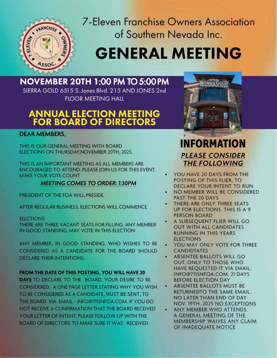 Our Mission is to unify, educate, and promote a profitable franchise business. To facilitate respect, honesty, trust, mutually beneficial relationships and participation among the Membership; 7-Eleven Inc., our National Coalition,